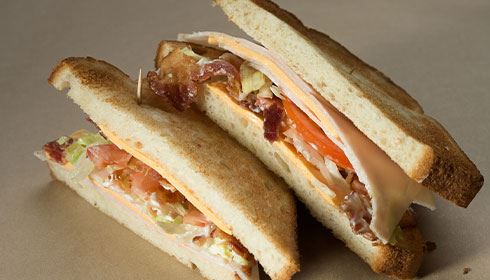 Sliced Turkey Breast, with crunchy bacon mixed with lettuce and tomato with signature sauce